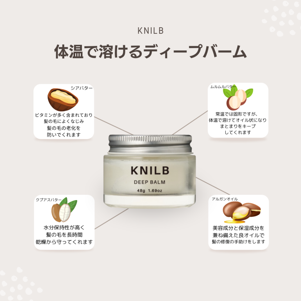 選び抜かれた自然由来の成分を使用し、乾燥した髪に潤いを与えながらスタイリングが可能です。手に残ったバームは、そのままハンドクリームとしてもご利用いただけます。